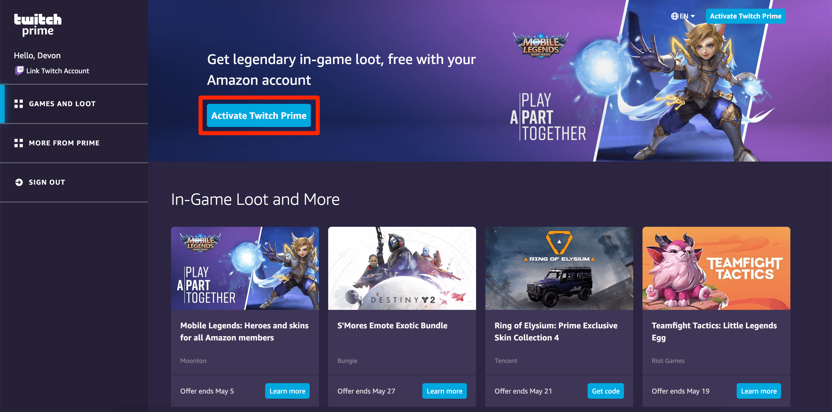 Error message when i sign up for prime gaming.
